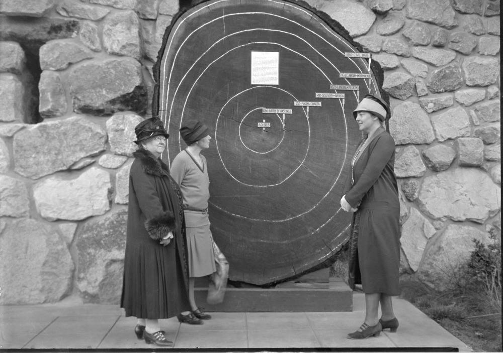 Miss Harlean James, Mrs. Sluter, Mr. Justin James at Mariposa Grove