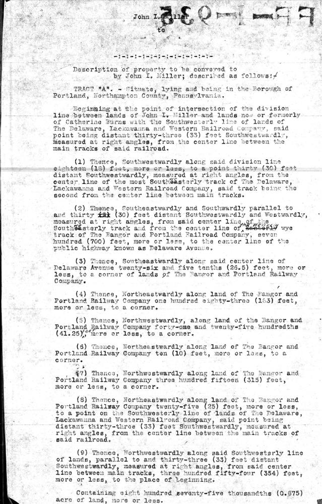 003 page 1 Description of property to be conveyed by John I. Miller--Portland, PA