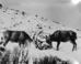Two bucks (deer) sham fighting at Yellowstone National Park. Image for museum exhibit purposes. [Image nearly identical to ZION 8849] ; ZION Museum and Archives Image ZION 8850 ; ZION 9921