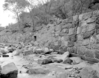 Flood damage to rock wall on Virgin River, a quarter mile south of Court of Patriarchs. Record of damage or defective workmanship. ; ZION Museum and Archives Image ZION 8607 ; ZION 15933