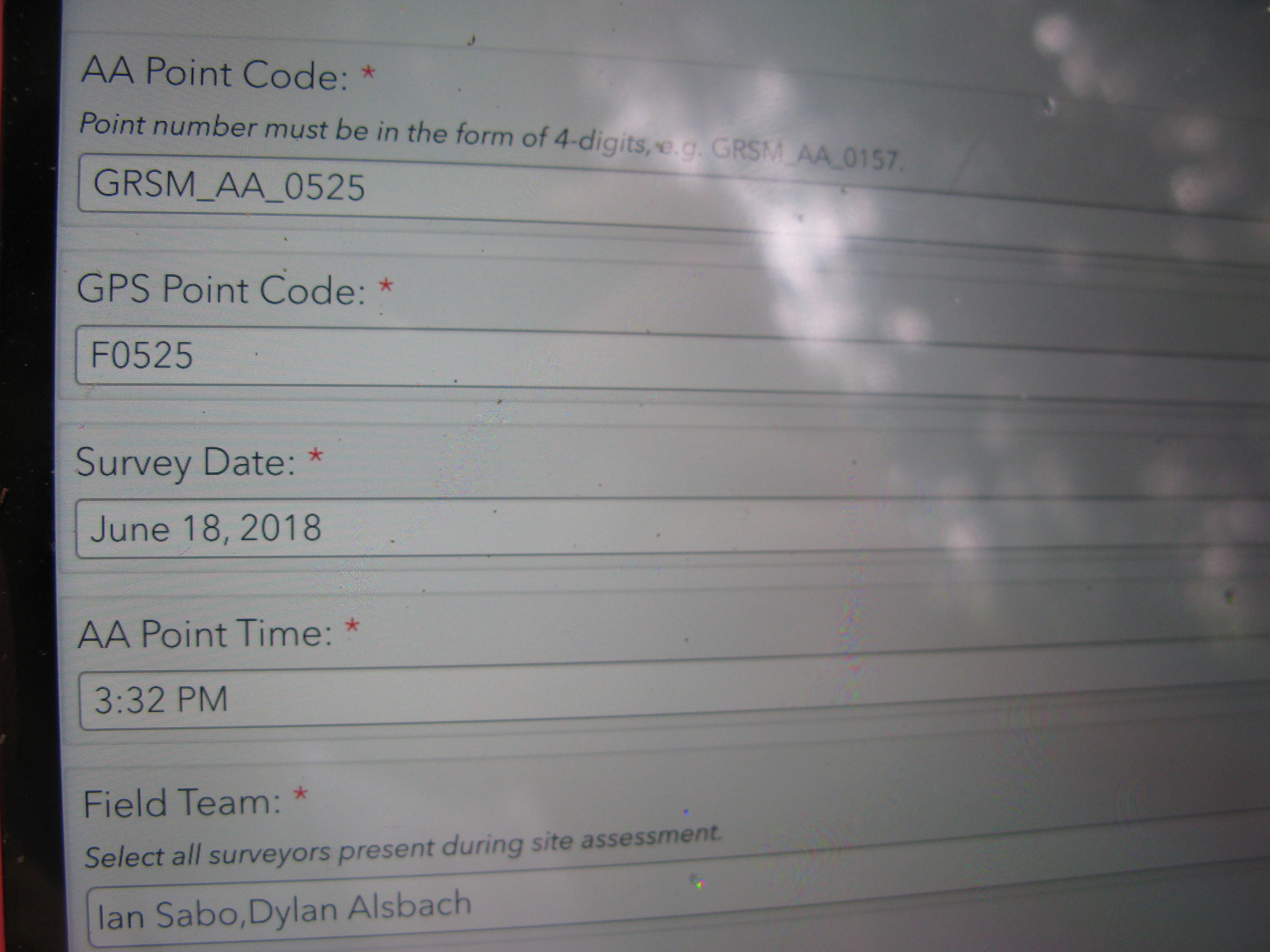 Plot Code: GRSM_AA_0525_1 from the Great Smoky Mountains National Park (GRSM) Accuracy Assessment.