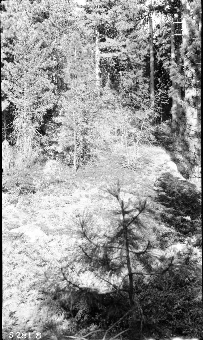 Guy Edwards, High Sierra Trail, SNP, High Sierra Trail Investigation, typical scene 6500' east of Sugar Bowl Dome. Mixed Coniferous Forest. 280000.