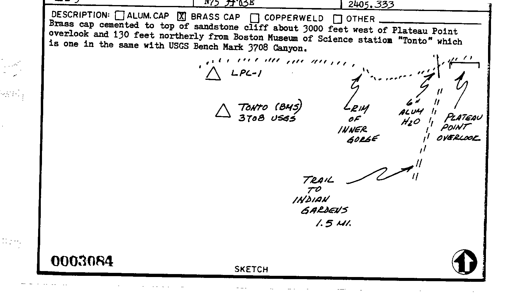 Survey monument record sheet, Sketch number: 00003084