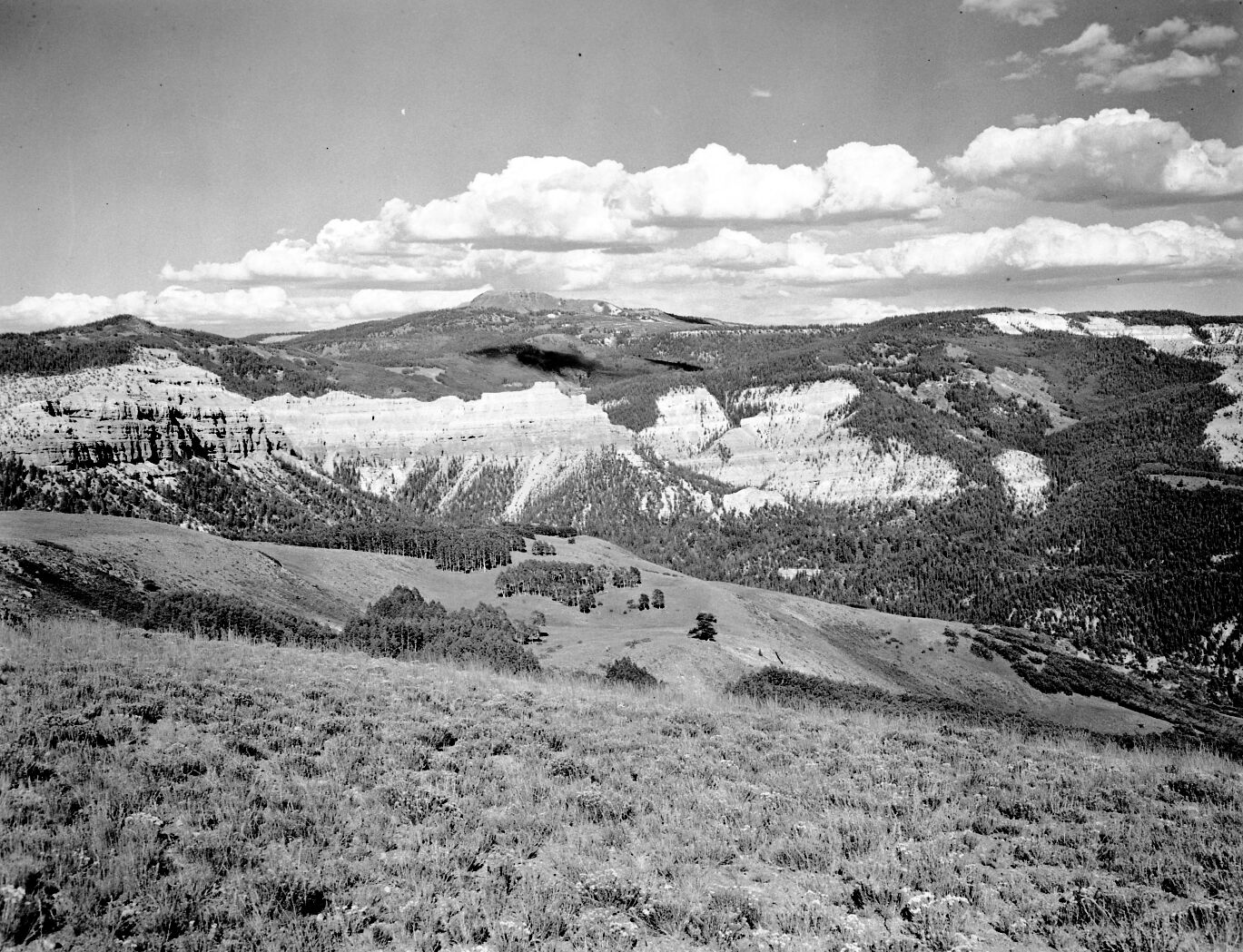 The amphitheater from the rim at Cedar Breaks National Monument. ; ZION Museum and Archives Image 10146 ; ZION 10146