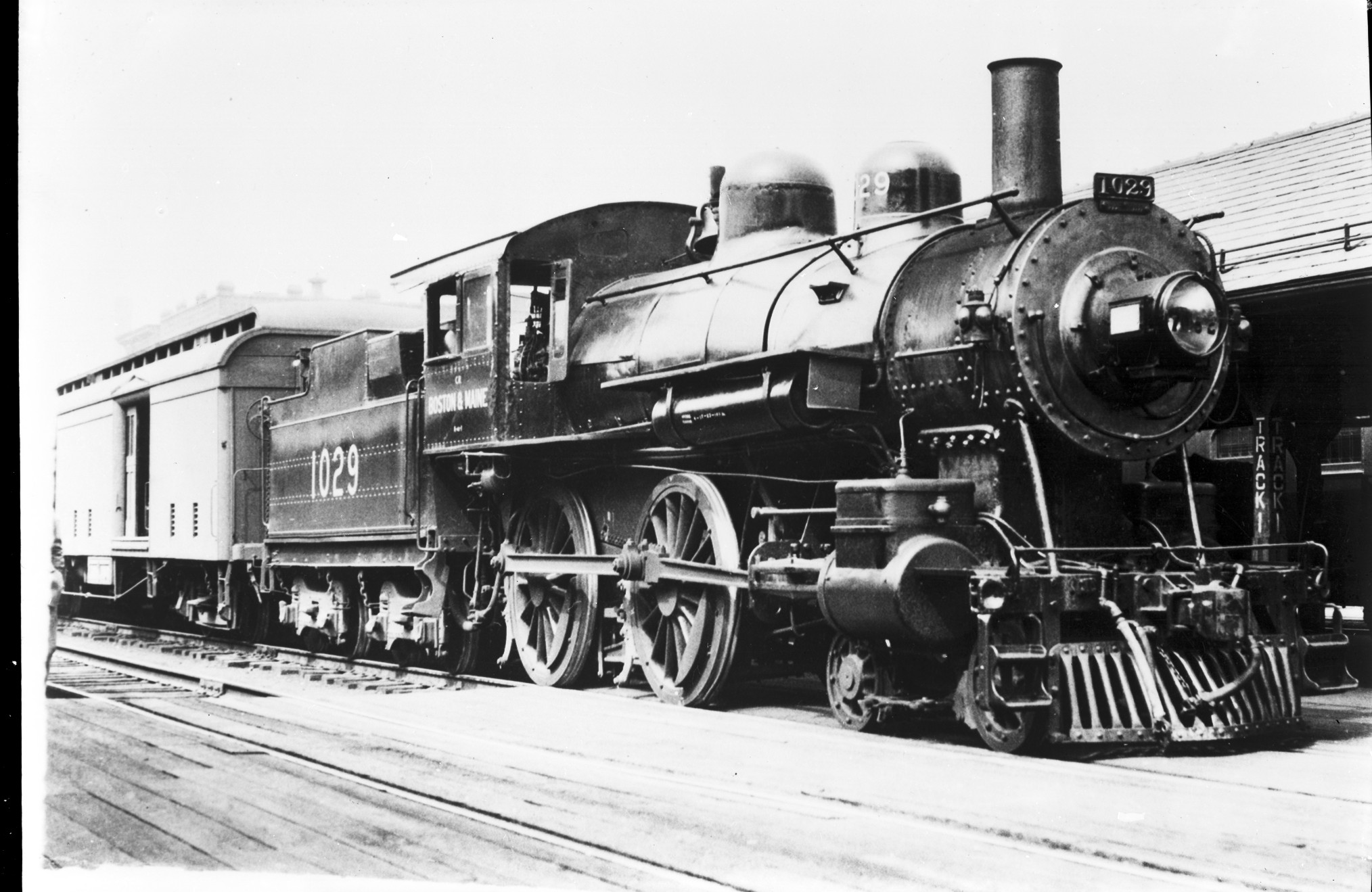 Negative #2458A Boston & Maine no. 1029 [4-4-0] Photo taken 1915 at MA--East Northfield ALCO/Manchester--Built 1911.04--Notes: Barrows--Ex 1270