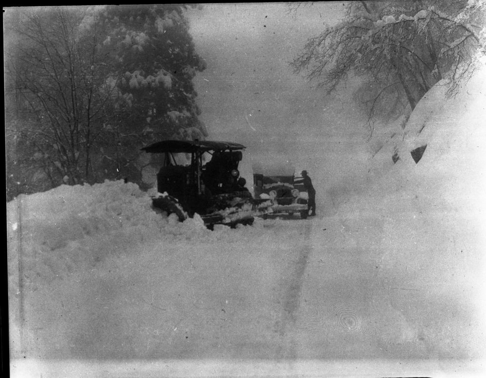 Unknown photographer, Generals Highway, SNP, below Giant Forest. Vehicles and Equipment, bulldozer clearing snow. 360222.