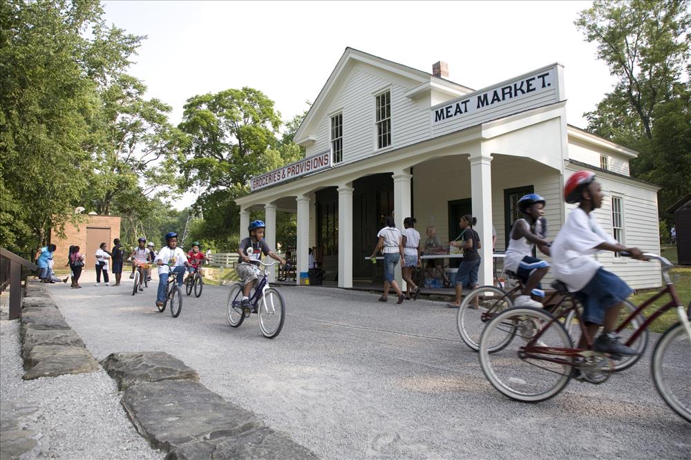 Cuyahoga Valley National Park (CVNP) and Cuyahoga Valley National Park Association present Get Up, Get Out & Go!, a campaign introducing recreational opportunities along the Ohio & Erie Canal Towpath Trail in Akron and the national park. The program targets residents in the urban neighborhoods surrounding the Towpath Trail in Akron which is a part of the larger Ohio & Erie Canalway, a national heritage area. Get Up, Get Out & Go! serves as an invitation for kids 11 to 14 years old and their families to give the Towpath Trail a try and to venture further along the trail into CVNP. || Youth bicycle on the Towpath Trail during the Get Up, Get Out, Go! kickoff event in June 2007. The group is lead by Metroparks Serving Summit County staff.