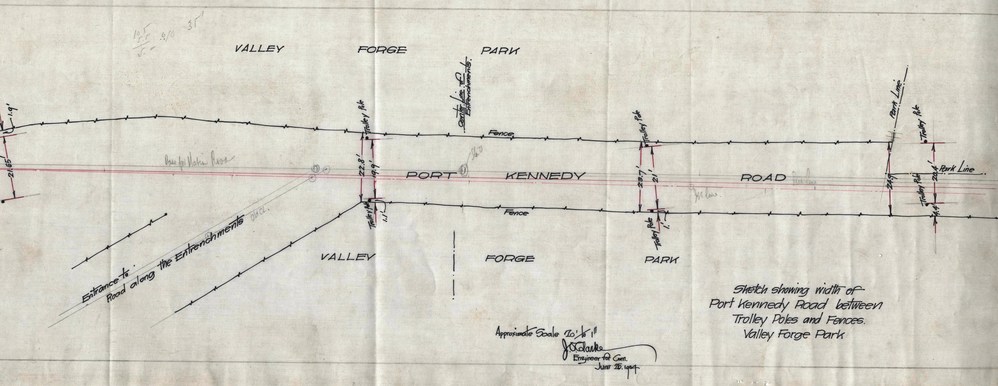 Sketch Showing width of Port Kennedy Road between Trolley Poles and Fences.