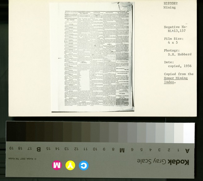 Mining reports copied by Douglass H. Hubbard in 1956.