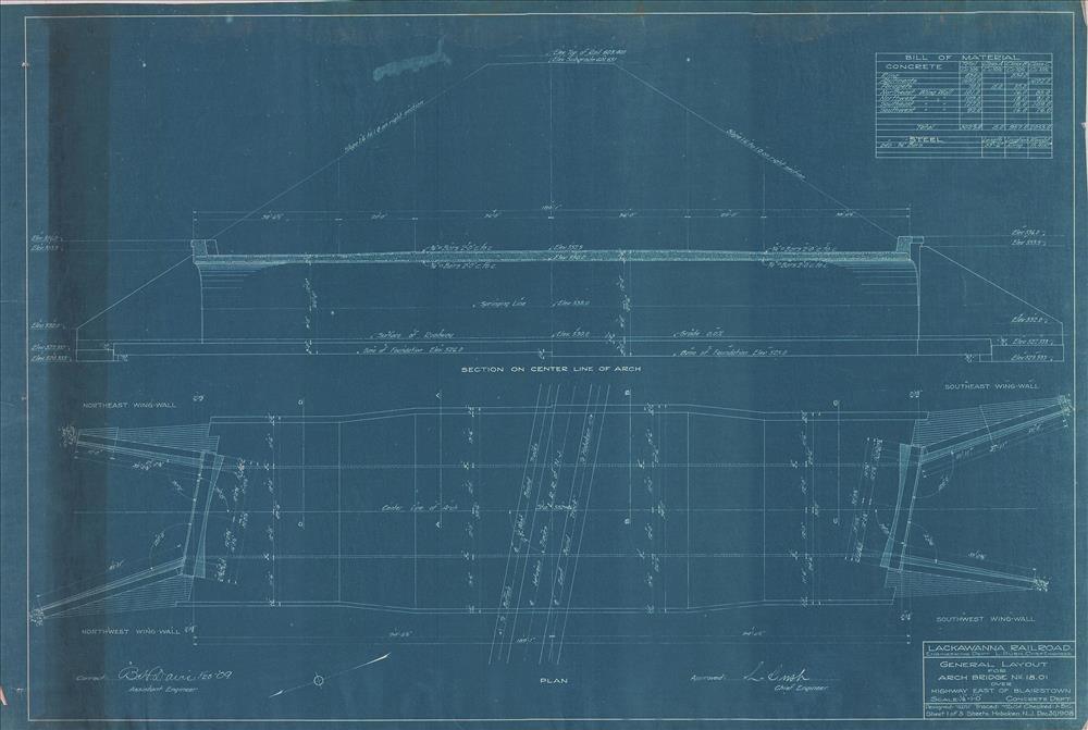 Arch bridge no. 18.01 over highway--General layout--East of Blairstown, NJ [1908.12.30] Sheet no. 1 of 5