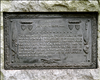 The rough-hewn base measures 7'4" x 4'2" and supports a block that is rough-hewn on 3 sides for a total height of 5'6". The smooth front bears an inscription, the rear a bronze plaque. The top angled section reads "ILLINOIS" in raised letters.