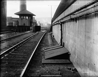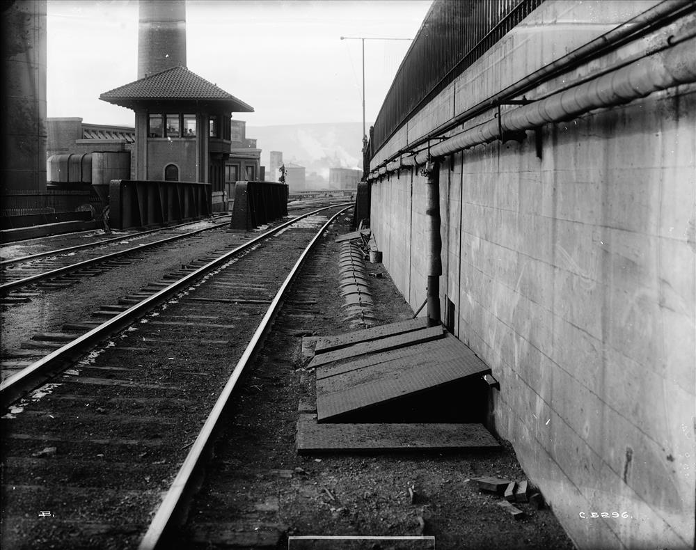 C5296 Concrete wall and buried pipe--Mattes Street Tower and Scranton Yard in the background