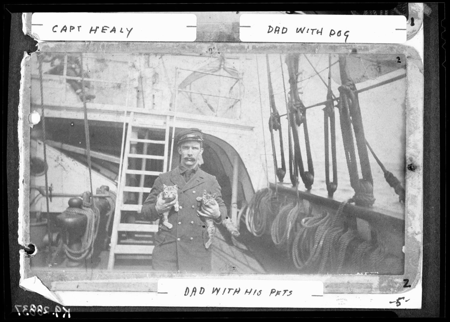 Bear (built 1874; cutter; U.S. Revenue Service) scene with Richard Cain and his two cats on board, circa 1891-1895