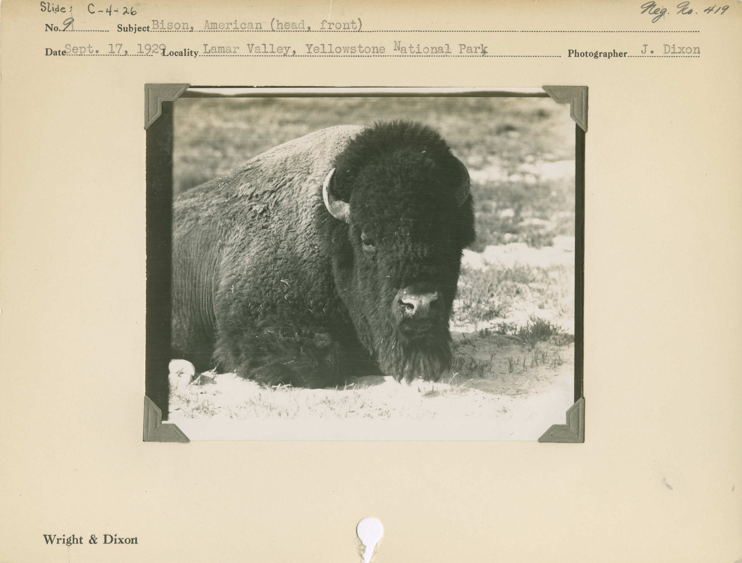 Bison, American (head, front). Locality: Lamar Valley, Yellowstone National Park. Negative #: 419