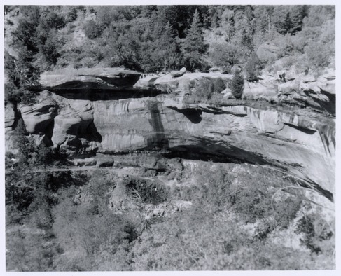 Location off trail at Weeping Rock where visitor fell and injured self. ; ZION Museum and Archives Image 107_04_009 ; ZION 8437