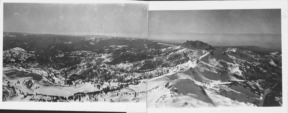 Arthur G. Holmes Collection: Album 4--Panorama of two compiled photos to give you a sweeping Southern view south from Lassen Peak, including Brokeoff Mountain.