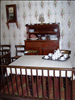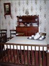 Images from the interior of the Lincoln Home. The wallpaper, carpeting, and draperies are reproductions of period patterns. Artifacts in the photos - furniture, dinnerware, knick-knacks, etc. - are largely period pieces, with only a handful of reproductions.