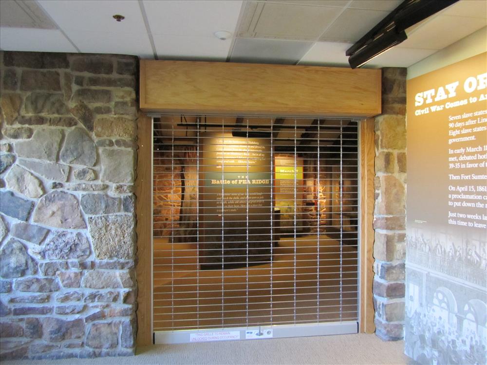 Security Door installed in the visitor center entry to the musuem in the summer of 2010 the door was installed by a contractor Metro Door the outer trim was installed by park staff. This door is to add additional protection to the artifact located in the musuem area.