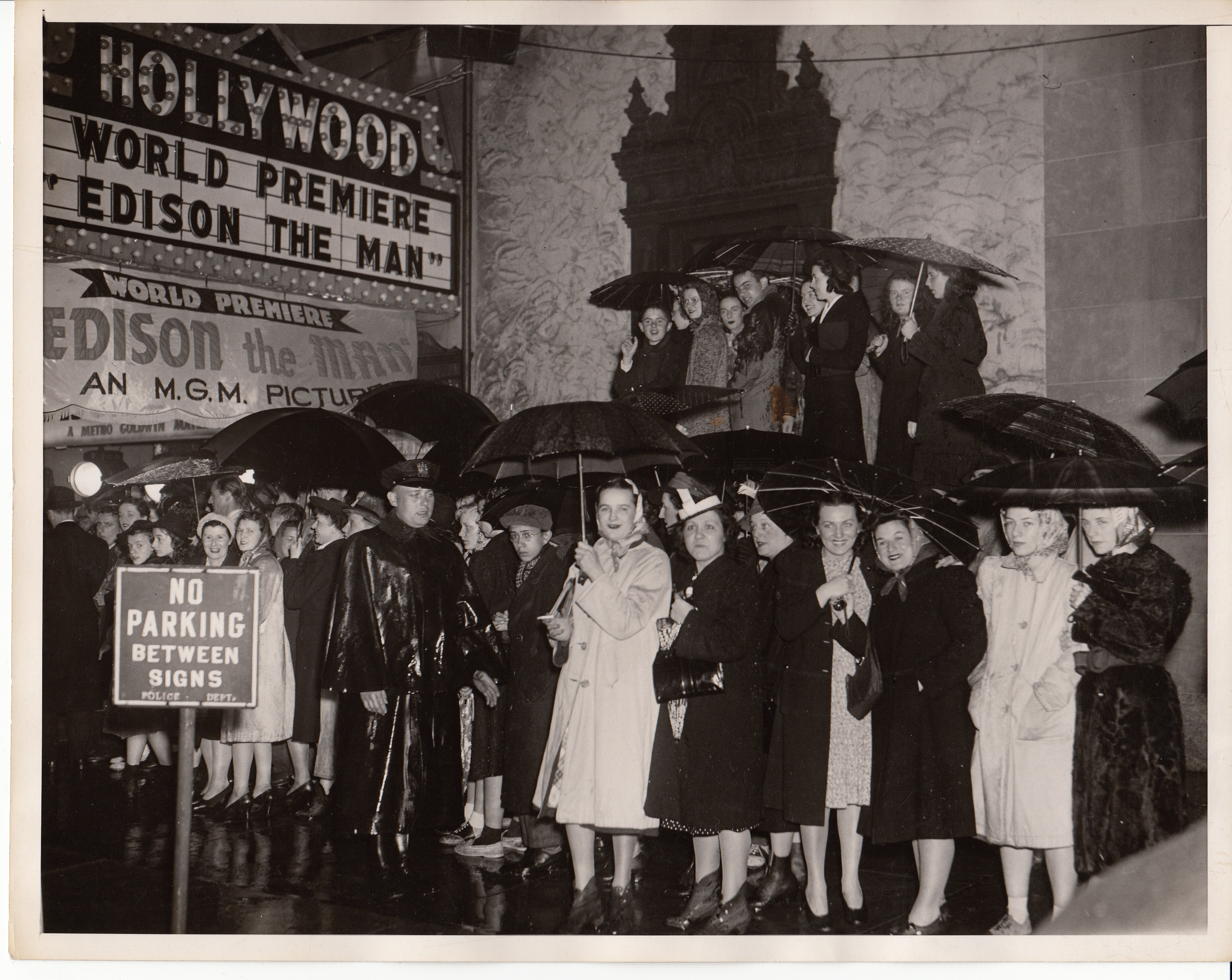 Crowd outside Hollywood Theater on Central Avenue in East Orange, NJ for premiere of "Edison, the Man."