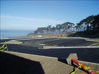 The existing Merrie Way parking lot is approximately 100 feet wide by 350 feet long. Fifty feet of the width sits on un-engineered fill and poses a landslide hazard. In order to re-construct a fully code compliant parking lot and subsurface drainage system, the geotechnical engineers recommend drilling cast-in-place concrete piers every 8 feet along the western edge and extend them down through the fill to bedrock to stabilize the slope (approx 65 feet deep) and prevent failure. After stabilization work is completed, the parking lot will be regraded and resurfaced using sustainable design practices.