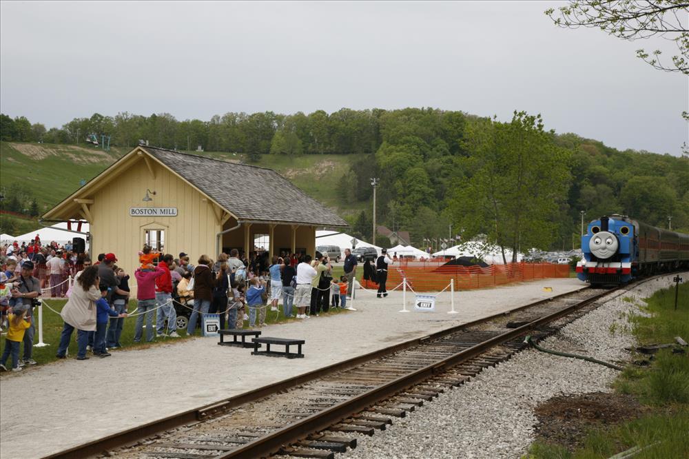 "A Day Out With Thomas" is an annual event in late May that draws approximately 20,000 visitors to the national park. Families with young children enjoy a 25-minute train ride with Thomas the Tank Engine as well as a variety of other fun activities related to the classic British series. Here Thomas arrives at Boston Mill Station to an eager crowd of fans.
