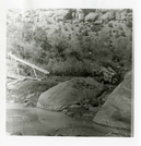 BW photo of the construction/modification of the Canyon Junction Spillway on the Virgin River. ; ZION Museum and Archives Image 105_02_01029 ; ZION 15933