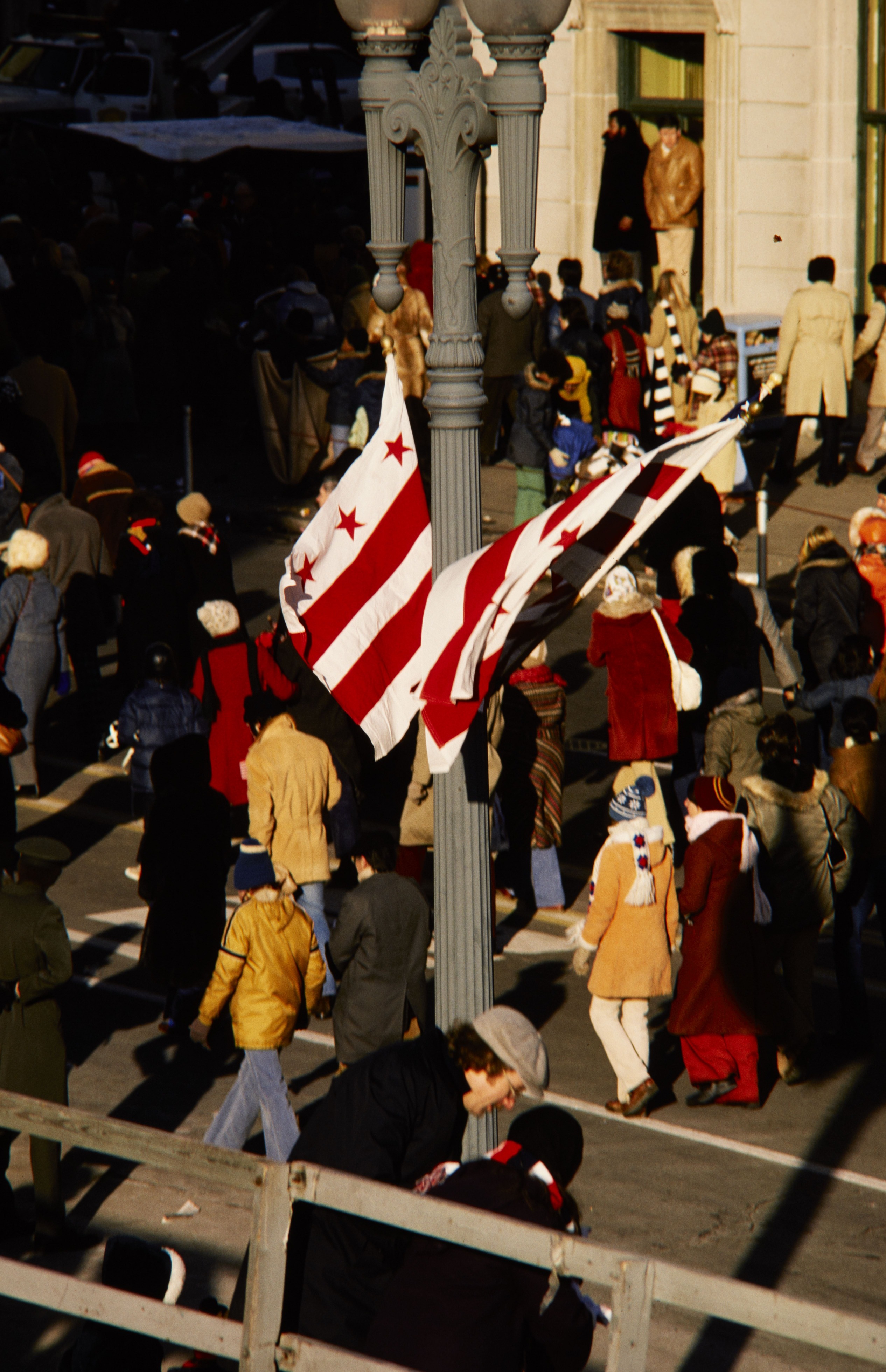 View of civilians walking 15th Street after President Jimmy Carter's Inaugural Parade in Washington, D.C.