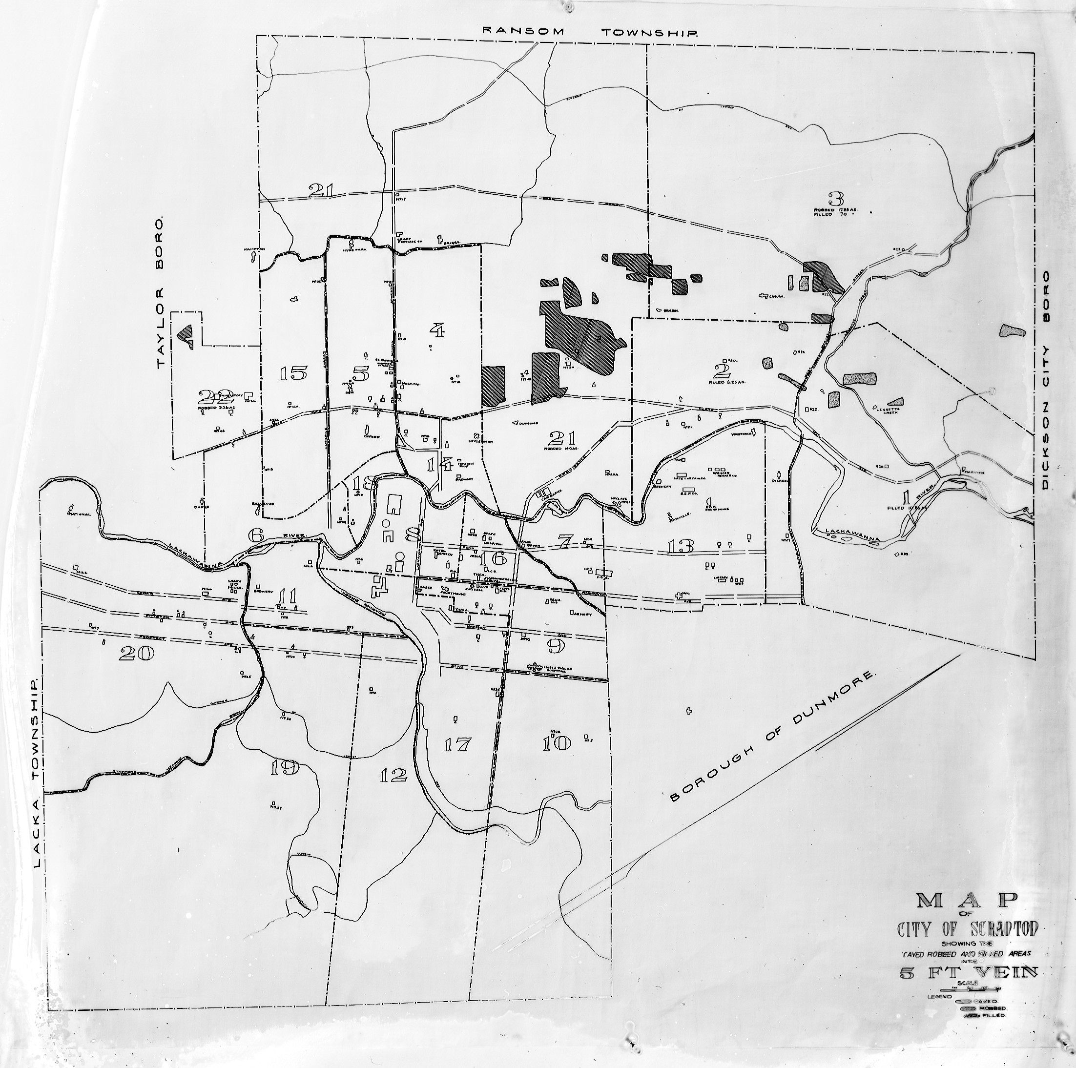 A1005-A1015--Scranton, PA--Map--Showing Caved, Robbed, and Filled Areas [1913]