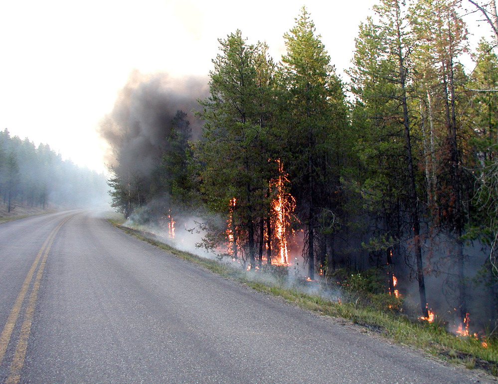 people watch smoke from bridge