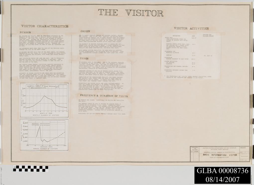 Master Plan for Preservation and Use of Glacier Bay National Monument. 18 pages including maps and text with blue and red ink corrections.