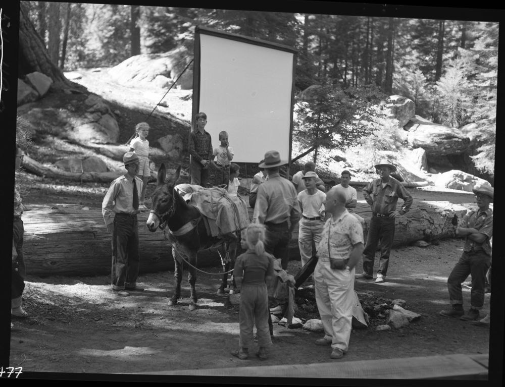 Wayne Alcorn, 540700, Giant Forest Amphitheater, SNP, Interpretive Activities, Burro packing demonstration with Ranger Naturalist H.A. Smith.