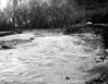 B&W negative of flood damage to Virgin River bank. ; ZION Museum and Archives Image ZION 8611 ; ZION 15933
