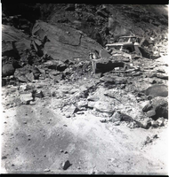 BW photo of rock slide near Echo Rock - 2.5" x 2.5". ; ZION Museum and Archives Image 107_06_06027 ; ZION 15933