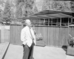 Mr. & Mrs. John Wegner and John, Jr. at house on Soap Suds Row - Army housing near Old Yosemite Lodge. Copied from the Wegner photo album.