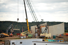 More progress on the main walls. Roof beams were installed between the walls - check out the Visitor Center Construction - Assorted Views gallery for images of the beam work.