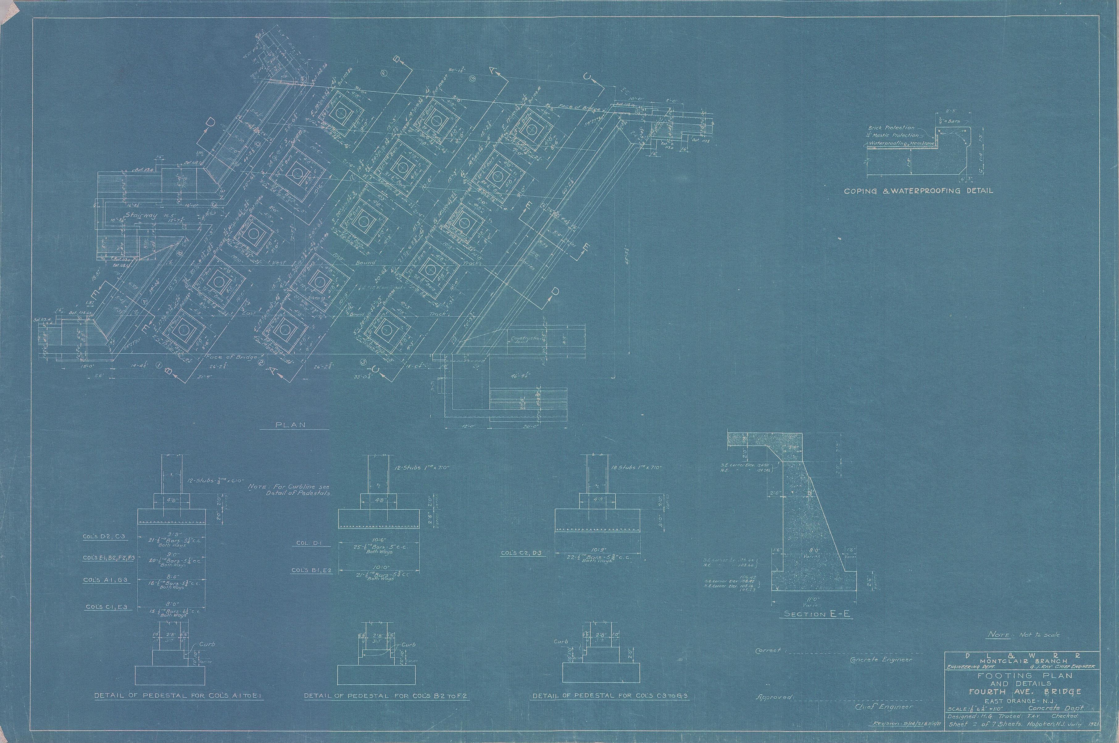 Fourth Avenue Bridge--Footing plan and details--East Orange, NJ [1921.07] Sheet no. 2 of 7