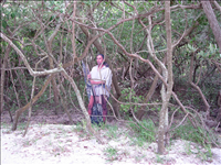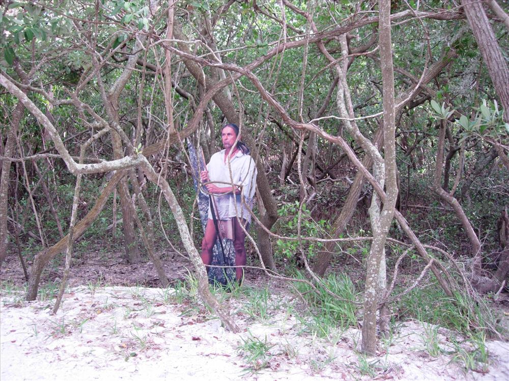 Cutout exhibits of 16th century explorers and Native Americans on the nature trail at De Soto National Memorial in Dec. 2004