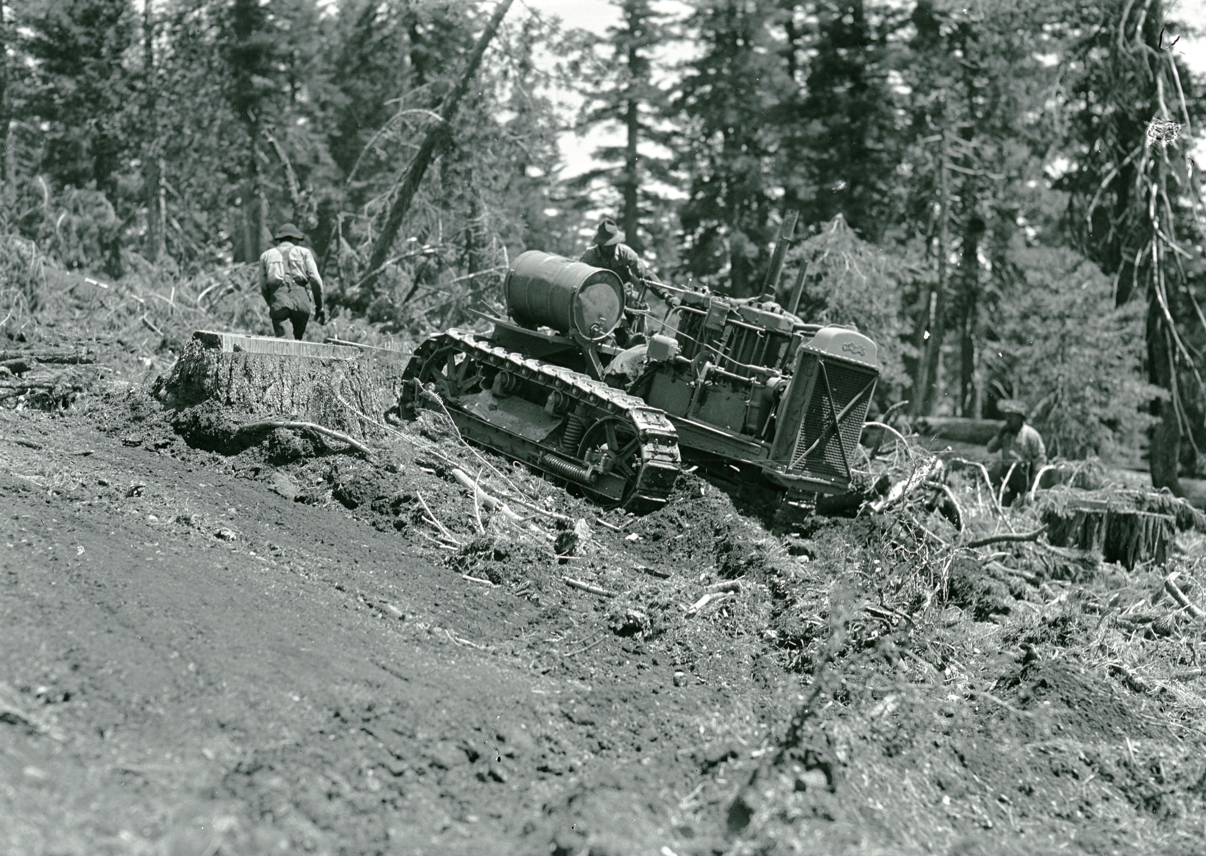 Copy Neg: Leroy Radanovich, November 2001. Yosemite Lumber co. Caterpillar 60 in operation. Museum Collections Cat. No. YOSE 81676.