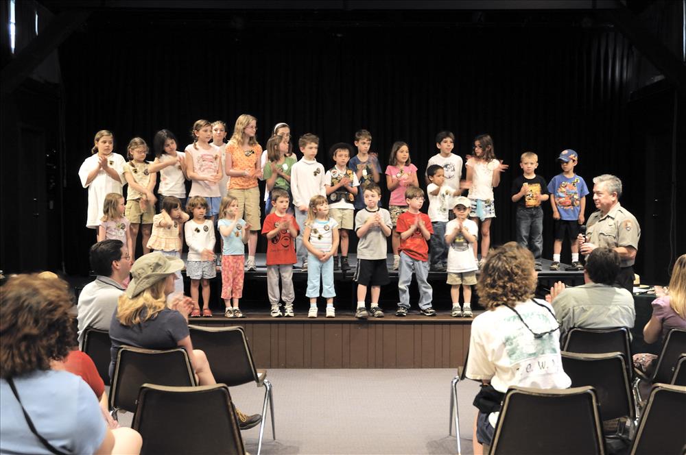 Junior Rangers attend a ceremony to receive their CVNP Junior Ranger badge. The ceremony is lead by Superintendent John Debo and Park Ranger Pam Barnes. || National Junior Ranger Day was celebrated at Happy Days Lodge with a day full of free programs and special events, including a swearing-in ceremony for new and experienced Junior Rangers ages 4-12.