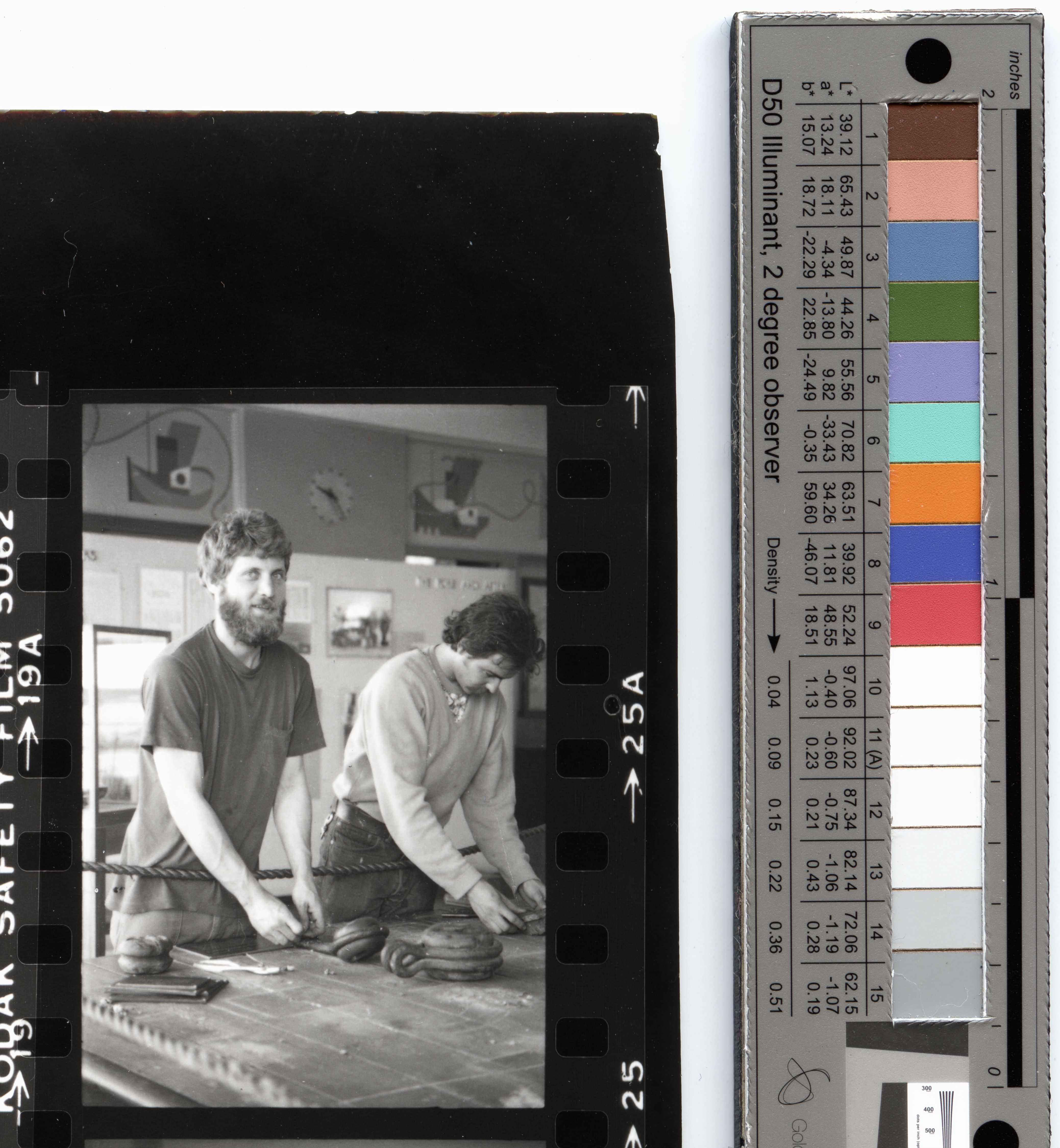 A10.30636.24 is from contact sheet frame 25. Tom Wicks is on the left. This series consists of one contact sheet of 25 black-and-white 35mm negatives documenting the exhibits in the Aquatic Park Bathhouse on the second floor of the San Francisco Maritime Museum. For the same subject, see A10.30,035 nl.