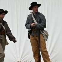 Confederate soldiers holding their muskets.