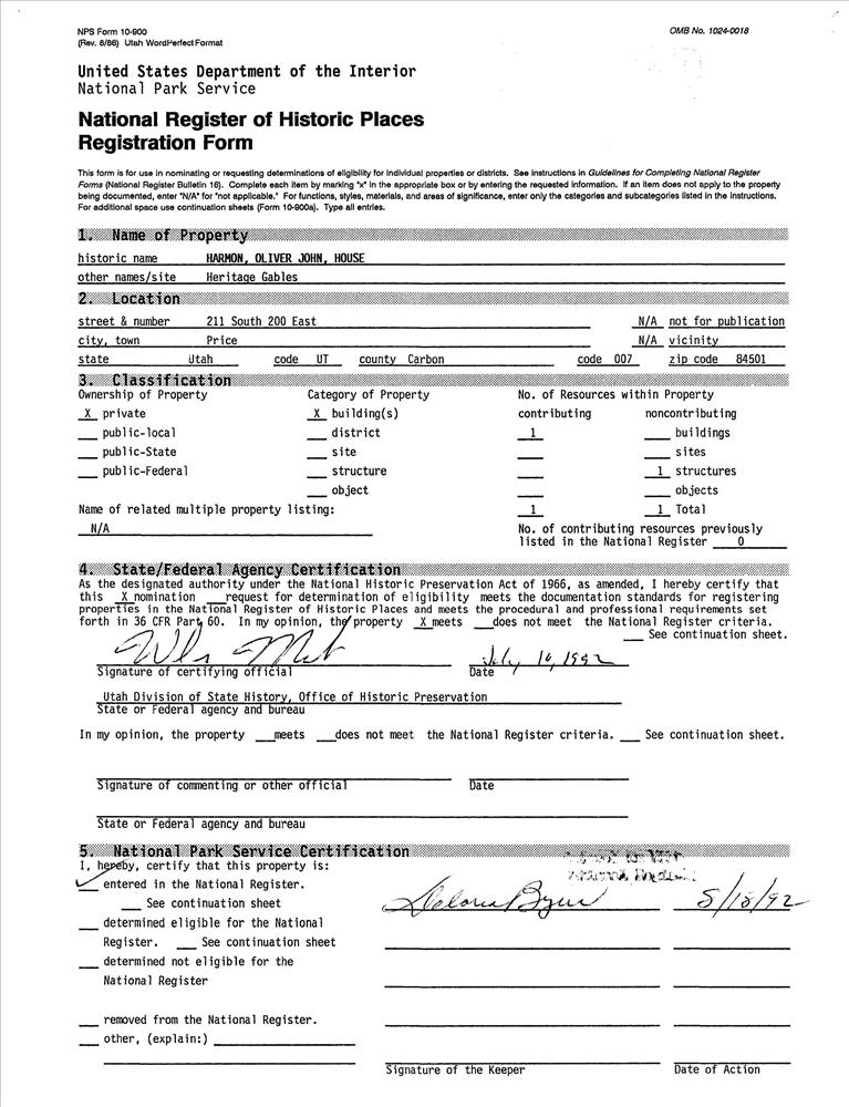 Harmon, Oliver John, House