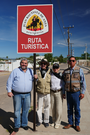 Four people smile next to an Anza Trail Ruta Turistica sign