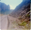 Mountains ahead in the distance along the Kolob Terrace Road - North Unit. ; ZION Museum and Archives Image 002.08.01-5of26 ; ZION 15933