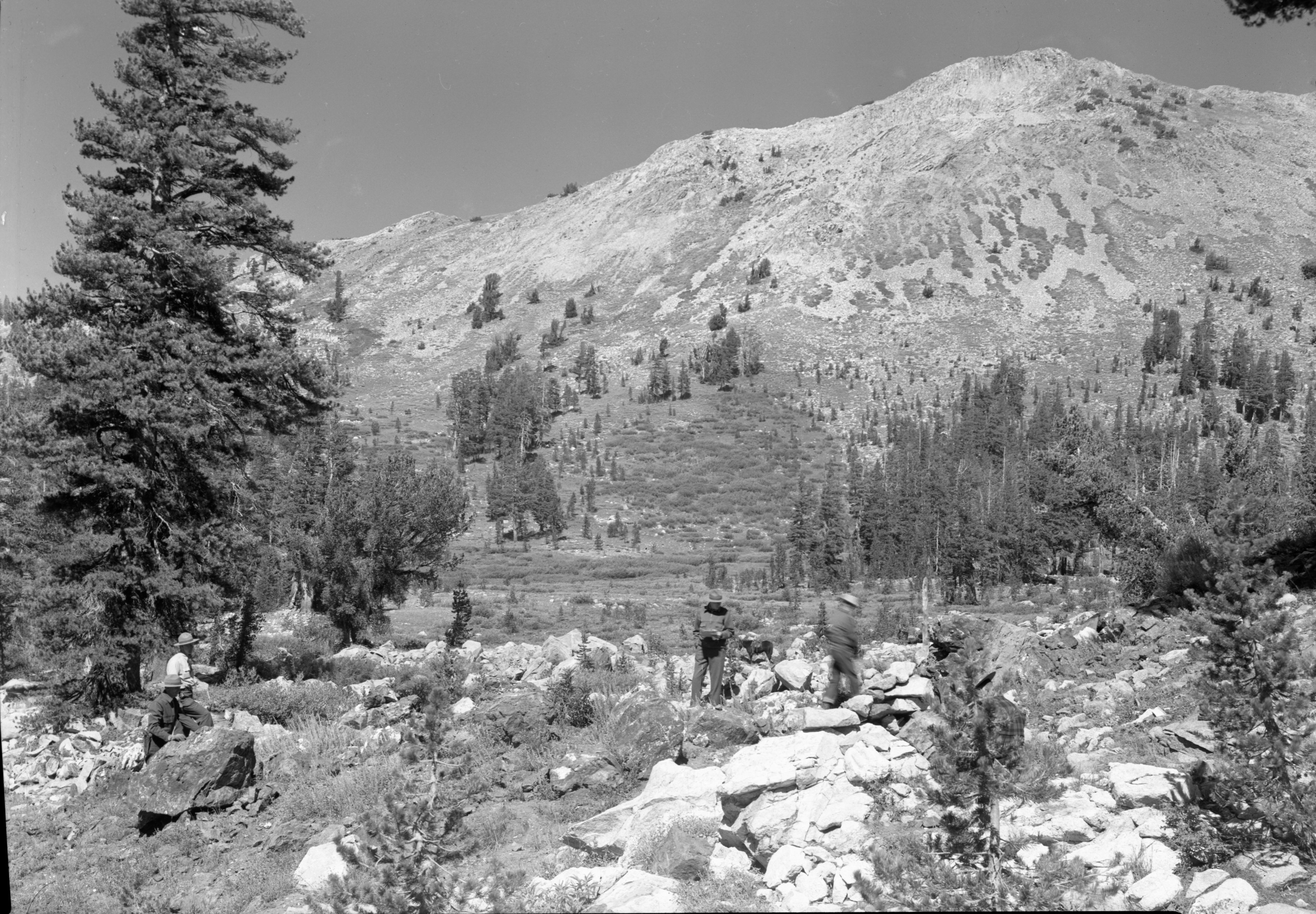 Copy Neg: Leroy Radanovich, November 2001. Yosemite Lumber Co. Looking north across 11 mile meadow - Wawona Road screen (seen?) in distance. Museum Collections Cat. No. YOSE 81675.