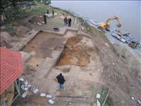 Project included raising the level of riprap around the shoreline of the bluff, constructing an eight foot wide path around the toe of the bluff, constructing a concrete cell wall at the base of the slope, and regarding the top thirty feet of the bluff. The repairs were concentrated along a section of fluff located along the northwest corner of the unit. The repairs generally included raising he height of approximately 650 feet of the existing riprap revetment along the shoreline of the two rivers; removal of vegetation and loose and unstable soil from the toe and face of the bluff; constructing a 450 foot long low height pre-cast concrete retaining wall at the base of the bluff; and then backfilling behind the wall and against the existing slope with an open graded coarse aggregate to control drainage. The top of the wall was built to elevation 16 feet NVGD. A geotextile was used as a filter media to separate the natural soils from the coarse aggregates. The finished slop behind the wall was maintained at a 2 horizontal to 1 vertical slope. An additional 890 tons of riprap was added to the height of the revetment along the project shoreline and thereby provide additional storm protection to the area. The area between the revetment and the retaining was backfilled and a small path was maintained between the toe of the wall and the riprap revetment for public and park access. The finished slope was covered with a geo-cell geo-textile which was filled with topsoil and seeded.