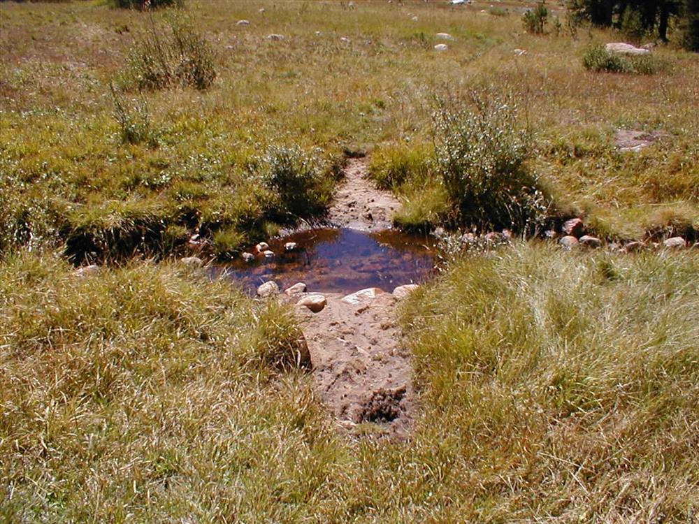 Meadow impacts from stock use at Lower Rock Creek Crossing, Sequoia and Kings Canyon National Park