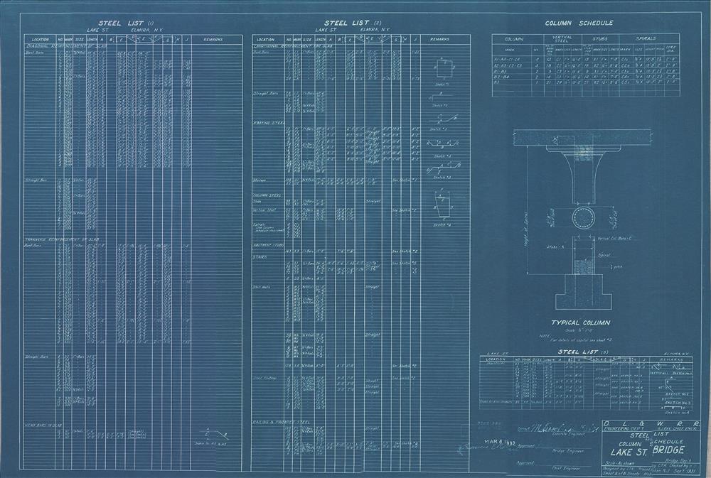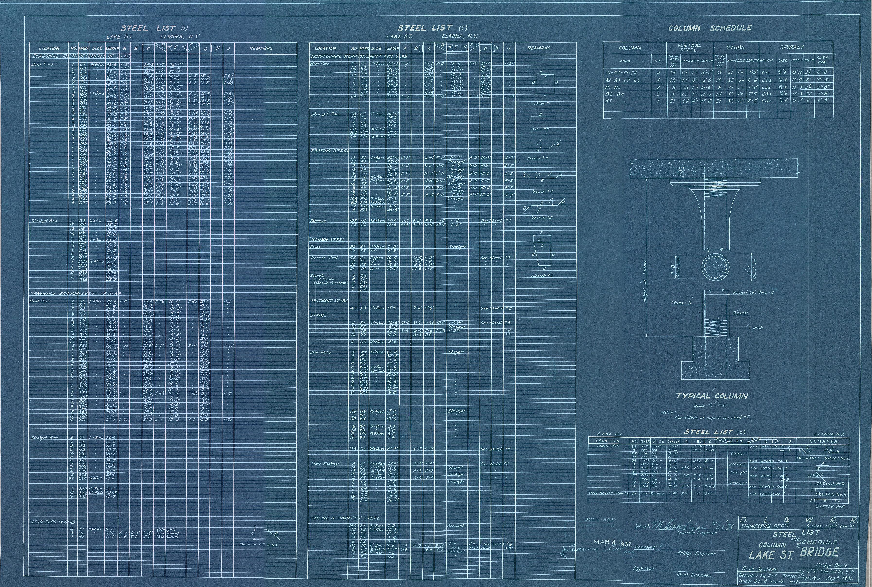 Lake Street Bridge--Steel list and column schedule--Elmira, NY [1931.09] Sheet no. 5 of 6--shows typical column