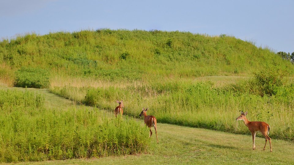Deer enjoying a stroll around the mounds, Ocmulgee National Monument, 2015.