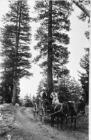 Team & wagon with passengers, Wawona Tunnel Tree. Frank R. Coburn; Merced, CA (?)
